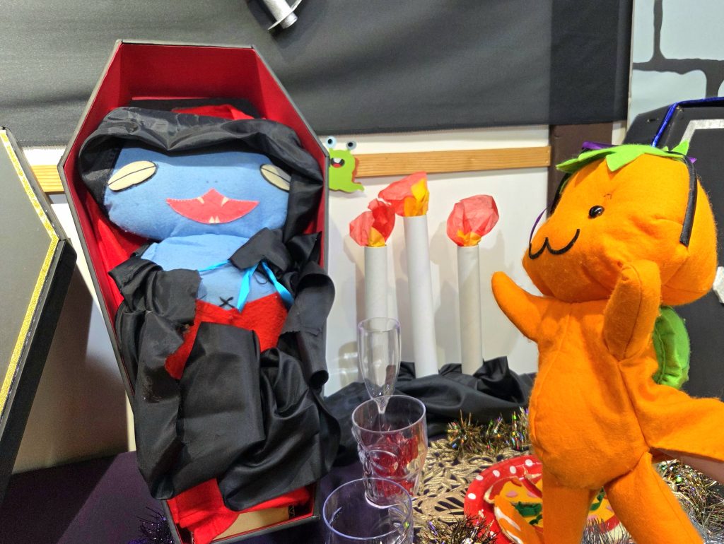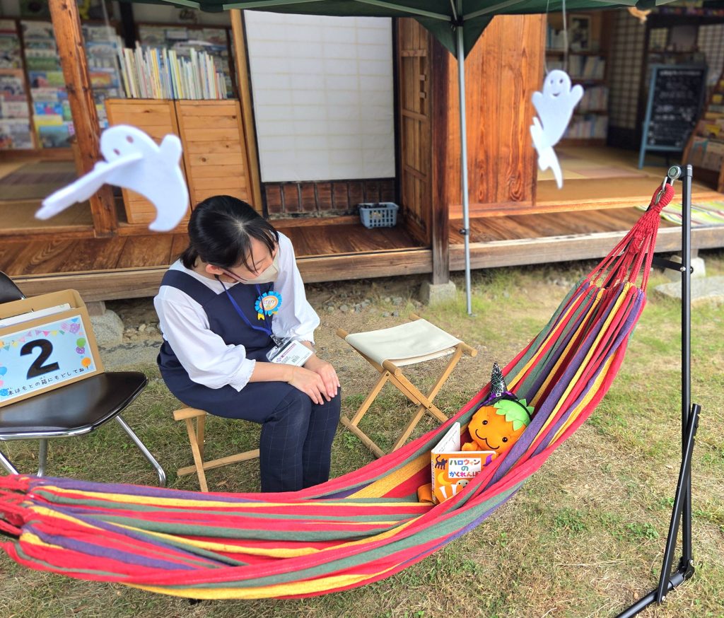 Park Library、子ども図書館最高! 公開:2025.10.14 ばぁっ!甘草屋敷子ども図書館にやってきたよー! ぼ、ぼくの仲間のほげが… まざるぼく ちょうど「おばけの蔵」がハロウィンバージョンに変わっていた♪ぬい仲間のほげちゃんが、ドラキュラ状態に!(゚д゚)!そしてお庭では、秋のパークライブラリーが開催中。楽しい楽しい♪ハンモックに揺られながら、お庭で本を読むなんて最高だ! 気持ちがいいなぁ… 甘草子ども図書館には、ぬい仲間もたくさんいるしお庭の柿仲間も色づいてきた…秋の甘草子ども図書館、おすすめだよ! ばばーん!