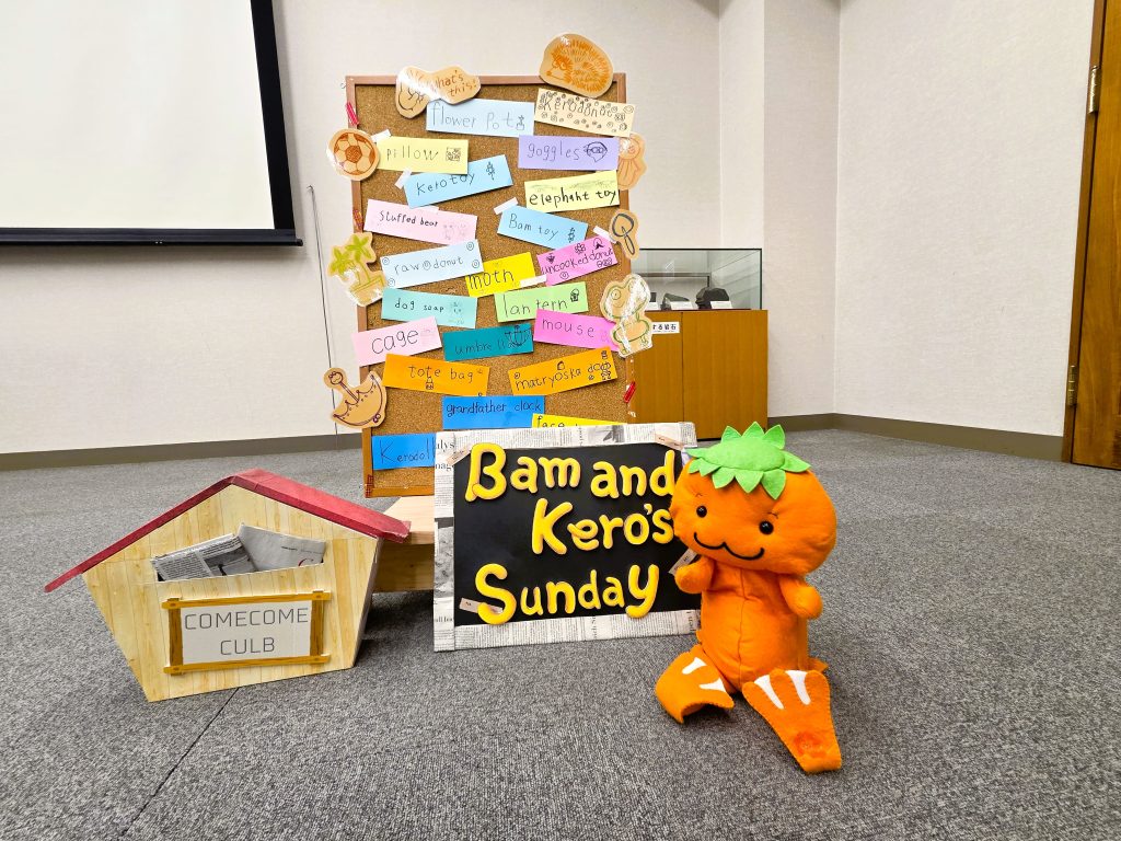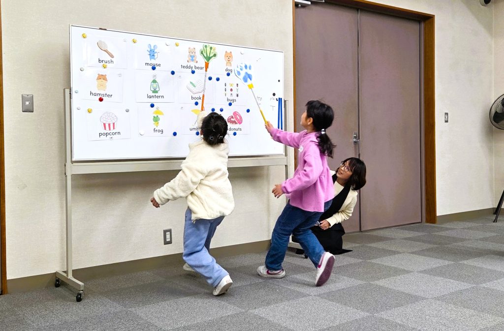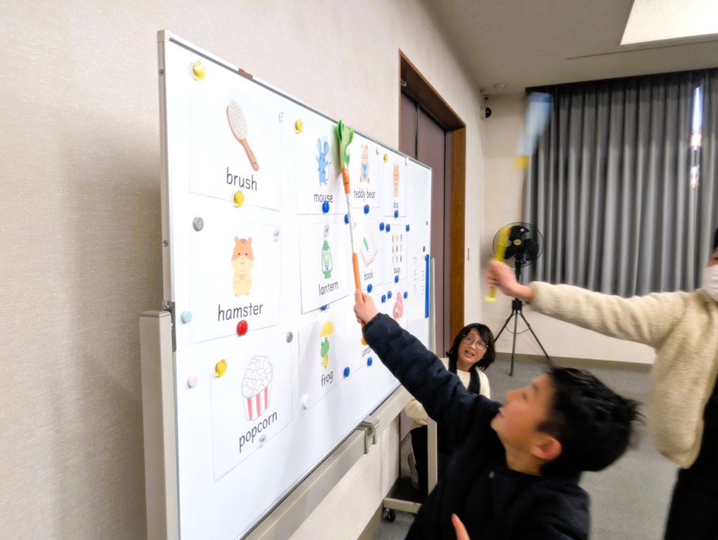 白熱! 公開:2026.02.08 1月のカムカムクラブはALTのトーマス先生!先生とは1年ぶりの再会!やっほー… いやいや、ここは は、はろぅー♪今日は『バムとケロ』の本を使ってアニマシオン そしてミニゲームの「Fly Swatter Game」にぼくも参加みんな… 容赦ないな… ぼくだって うおりゃあ~~! あー楽しかった♪