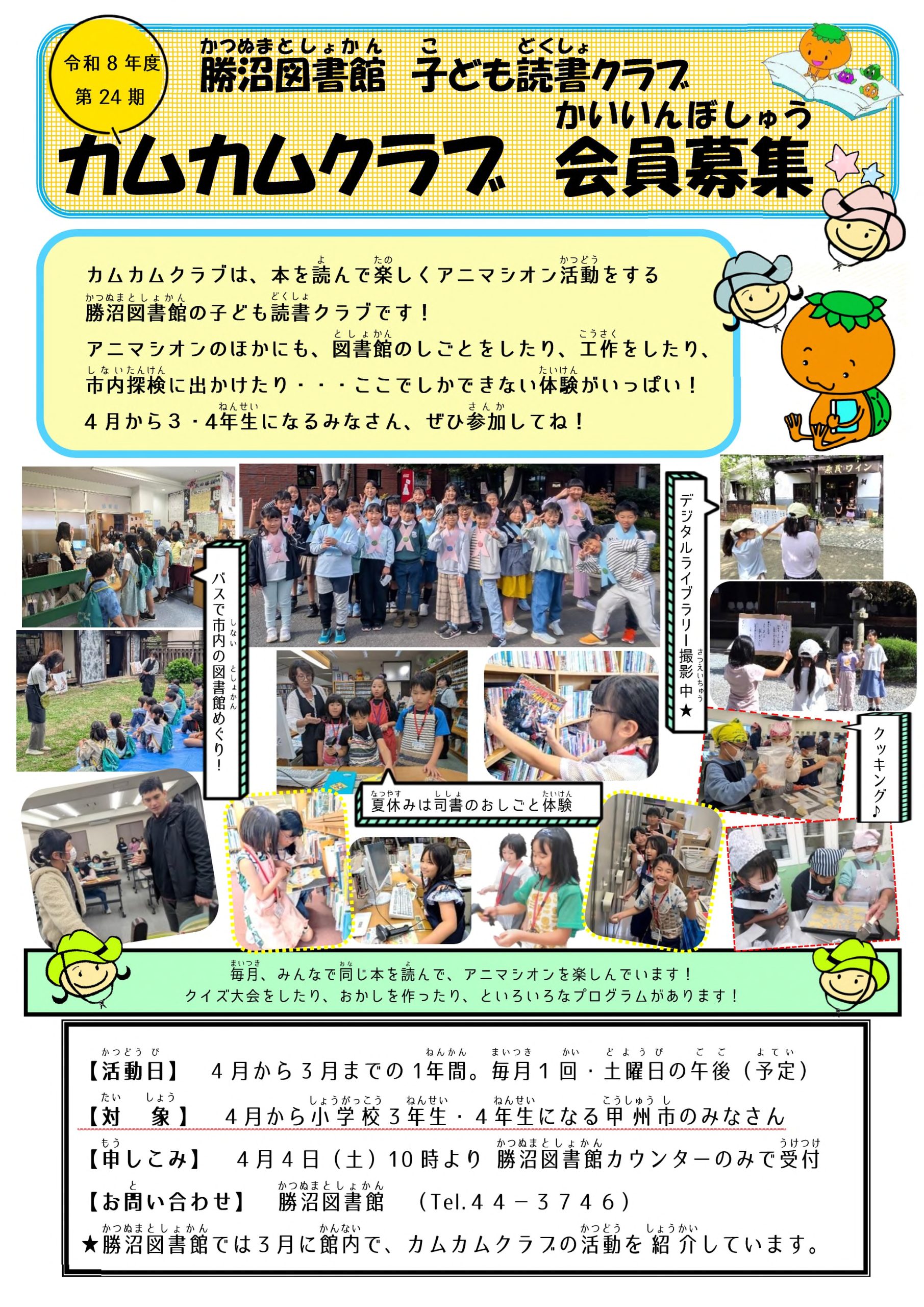 勝沼図書館子ども読書クラブ・カムカムクラブの第24期生の受付が開始されます!
