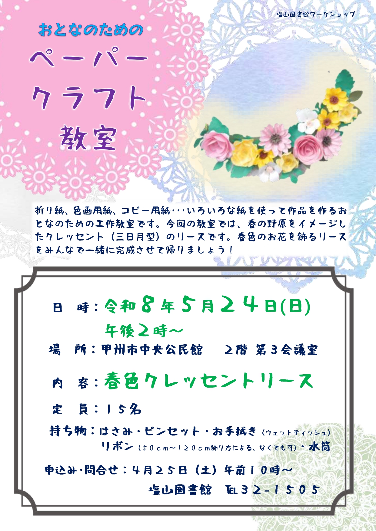 申し込み・問い合わせ:5月 25 日( 土 )午前 10 時~