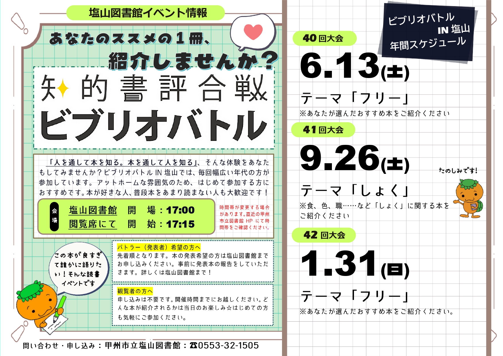 ※お申込みは、塩山図書館(TEL:0553-32-1505)まで